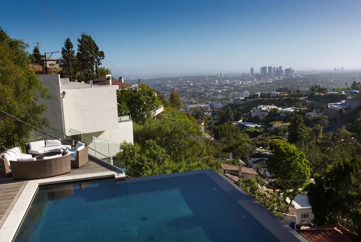 Welcome to our fabulous Hollywood Hills retreat, where luxury meets comfort and entertainment! Nestled in the exclusive Hollywood Hills neighborhood, this stylish home offers everything you need for an unforgettable stay in Los Angeles. This 3,500 sq ft Hollywood dream home has a beautifully designed large infinity pool with an unobstructed view of the city. This completely automated smart home Has a chefs kitchen with Miele appliances feature that caters to your every desire. With a bonus open-air fitness room to help keep you fit while enjoying the outdoors.